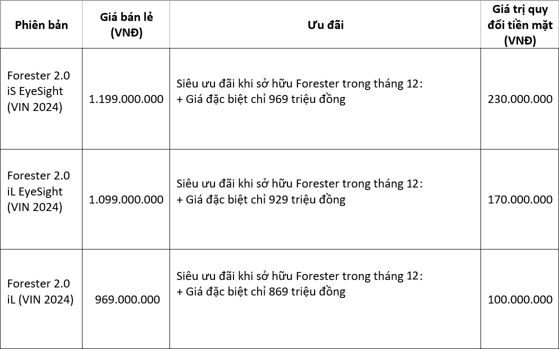 Từ nay đến hết 30.12.2024, đừng bỏ lỡ cơ hội sở hữu ngay những ưu đãi và quà tặng hấp dẫn dành cho Subaru Forester mới